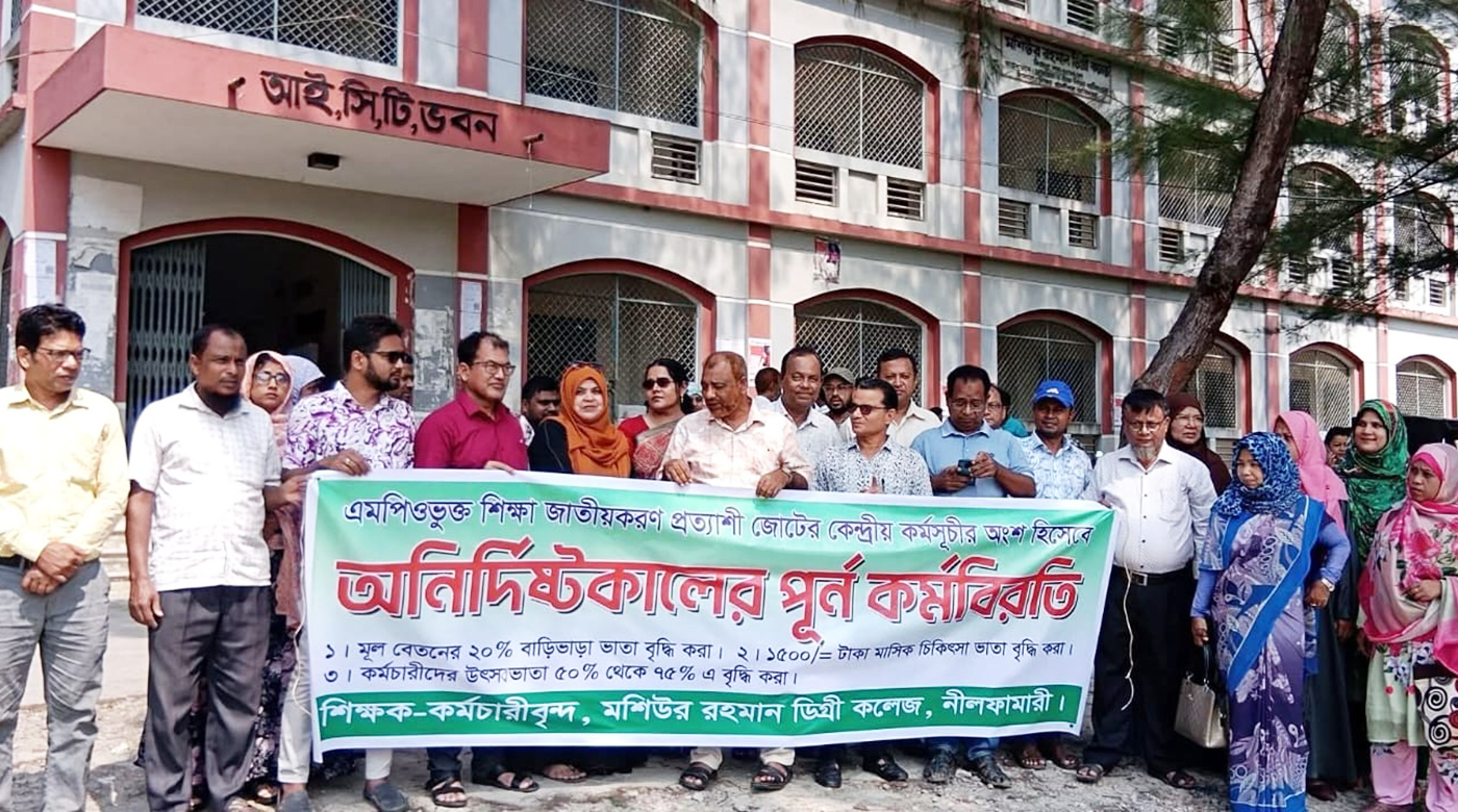 নীলফামারীতে শিক্ষক-কর্মচারীদের পূর্ণদিবস কর্মবিরতি পালন