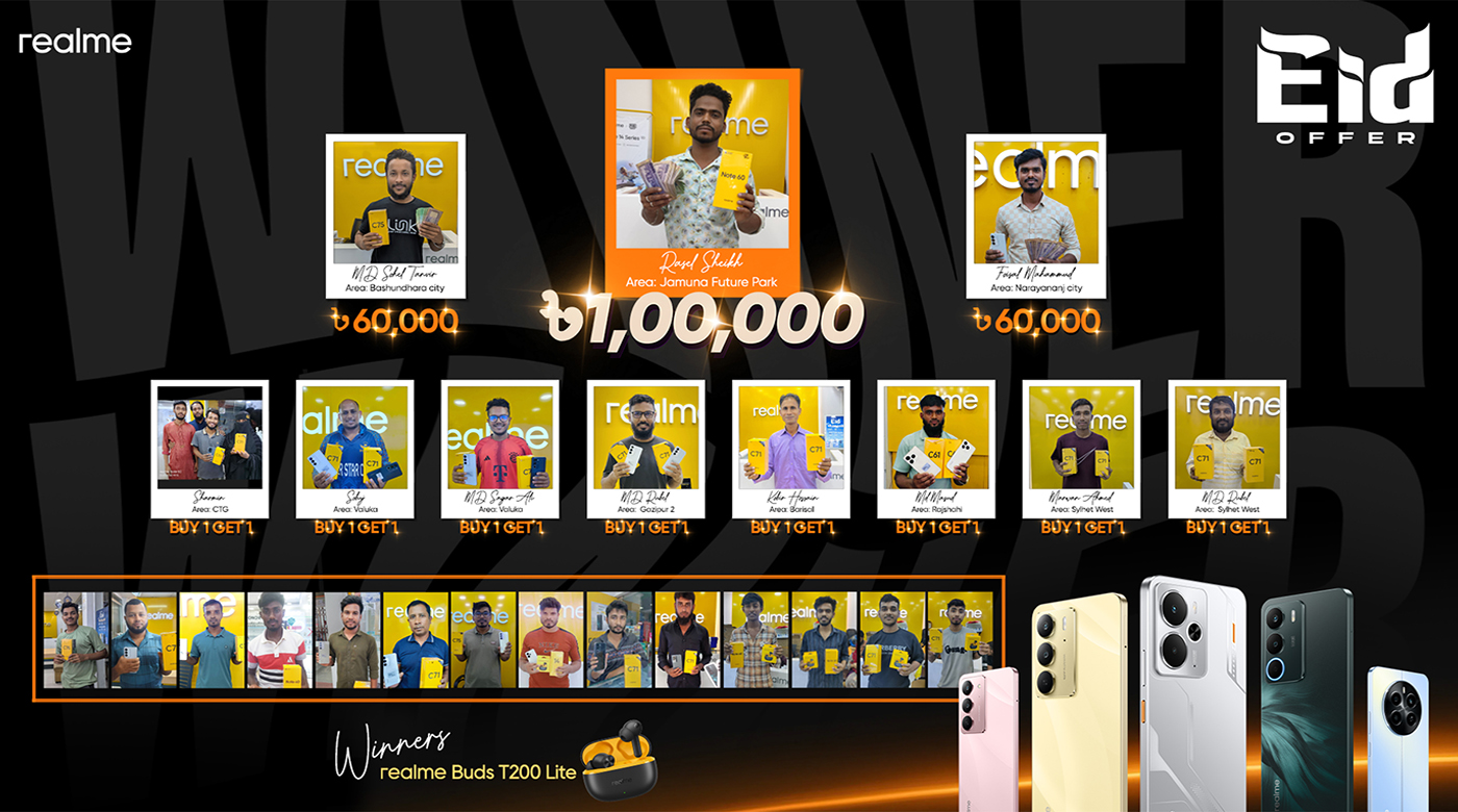 ঈদ ক্যাম্পেইনে বিজয়ীদের নাম ঘোষণা করলো রিয়েলমি