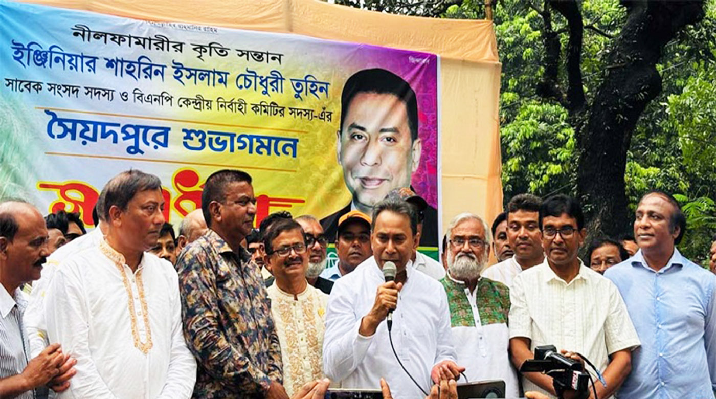বিএনপি’ সৈয়দপুর রাজনৈতিক জেলা শাখার সভাপতি অধ্যক্ষ আব্দুল গফুর সরকারের সভাপতিত্বে ও সাধারণ সম্পাদক শাহিন আকতারের সঞ্চালনায় অনুষ্ঠিত এ সংবর্ধনা সভায় শাহরিন ইসলাম তুহিন বলেন, ‘আমি ১৮ বছর পর নিজ জেলা নীলফামারীতে ফিরলাম। অনেক ভালো লাগছে। ফ্যাসিস্ট হাসিনার বিদায় হয়েছে। দুপুরে রান্না করা ভাতও খেতে পারেননি হাসিনা। অসম্মানিত হয়ে পালিয়ে গেছেন।’