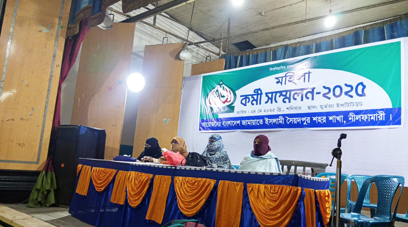 বাংলাদেশ জামায়াতে ইসলামী নীলফামারীর সৈয়দপুর শহর মহিলা শাখার কর্মী সম্মেলনে অনুষ্ঠিত হয়েছে। শনিবার (২৪ মে) বেলা ৩ টা থেকে ৫ টা পর্যন্ত রেলওয়ে মুর্তজা মিলনায়তনে এর আয়োজন করা হয়।