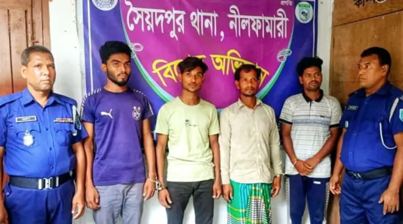 গ্রেপ্তারকৃতরা হলেন উপজেলার ধলাগাছ সুখীপাড়ার বাবর আলীর ছেলে নয়ন ইসলাম (২২), একই এলাকার আজিবর মিয়ার ছেলে মোনা মিয়া (৩৩), আমজান আলীর ছেলে রনি ইসলাম (১৮) ও সৈয়দপুর পাইলট উচ্চ বিদ্যালয় এলাকার আব্দুল বারী বাবলুর ছেলে হৃদয় হোসেন জয় (১৯)।