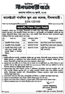 কালেক্টরেট পাবলিক স্কুল এন্ড কলেজে, নীলফামারী ‘খন্ডকালীন শিক্ষক’ পদে জনবল নিয়োগ দেওয়া হবে।