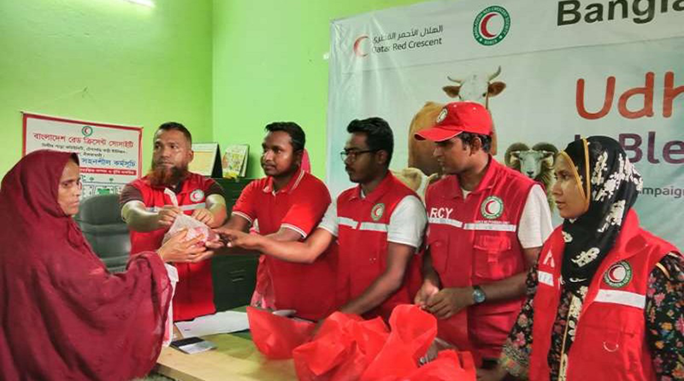 কাতার রেড ক্রিসেন্ট সোসাইটির অর্থায়নে নীলফামারী রেড ক্রিসেন্ট সোসাইটির উদ্যোগে শতাধিক পরিবারের মাঝে কুরবানির মাংস বিতরণ করা হয়।