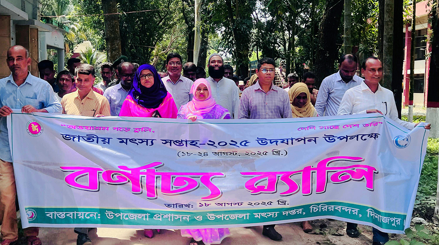 ‘অভয়াশ্রম গড়ে তুলি, দেশি মাছে দেশ ভরি’ এ প্রতিপাদ্য নিয়ে দিনাজপুরের চিরিরবন্দরে জাতীয় মৎস্য সপ্তাহ উপলক্ষে র্যালি ও