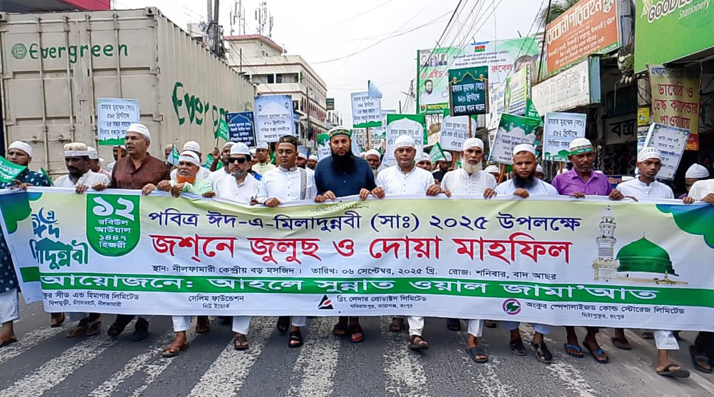 প্রতি বছরের মতন এবারেও নীলফামারীতে যথাযোগ্য মর্যাদায় পবিত্র ঈদ-এ-মিলাদুন্নবী (সা:) অনুষ্ঠিত হয়েছে। শনিবার (৬ সেপ্টেম্বর) বিকেল সাড়ে পাচঁ