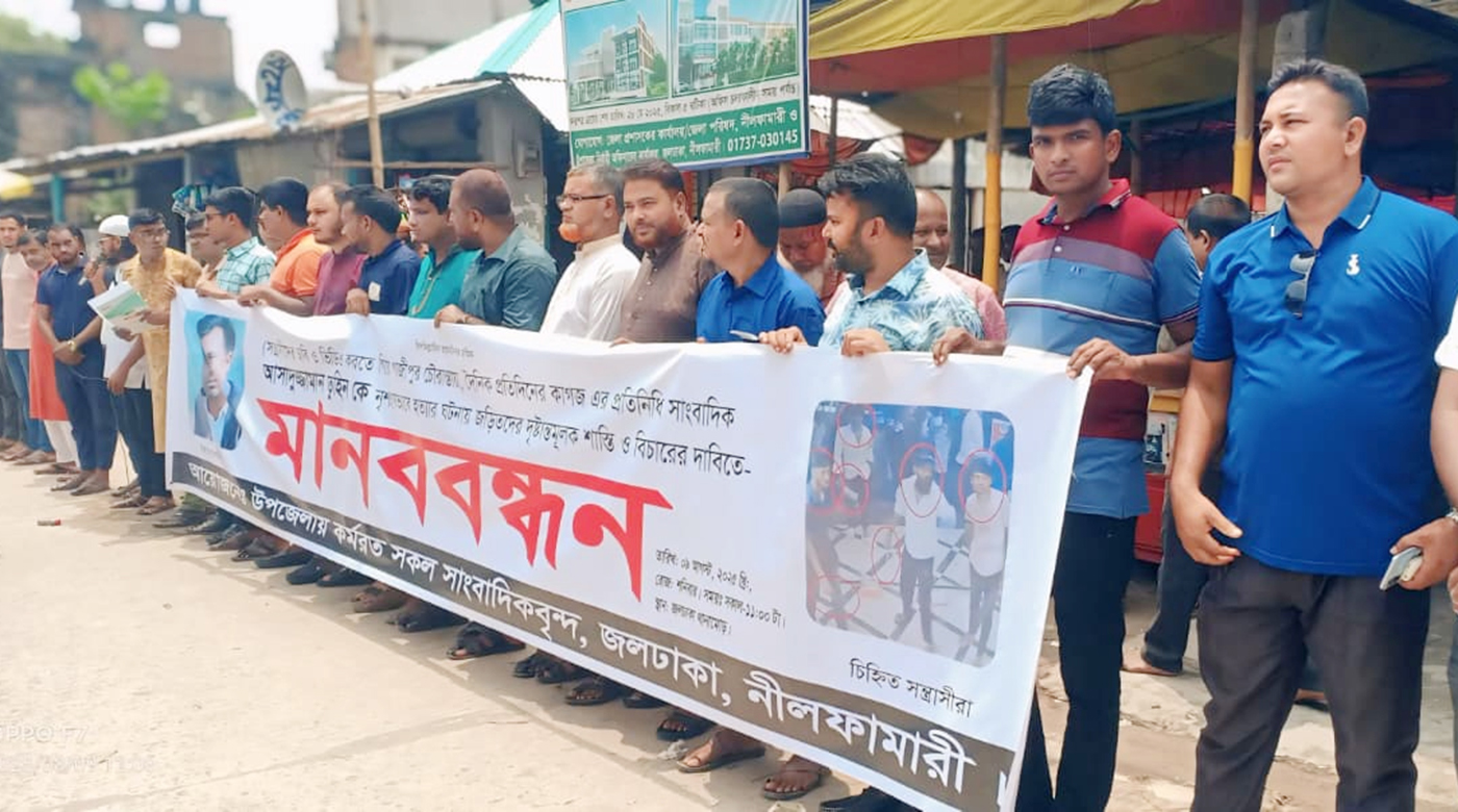 জলঢাকায় বুড়ি তিস্তা খননের দাবিতে কৃষকদের মানববন্ধন