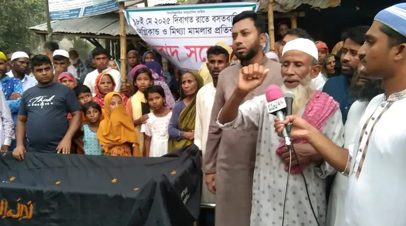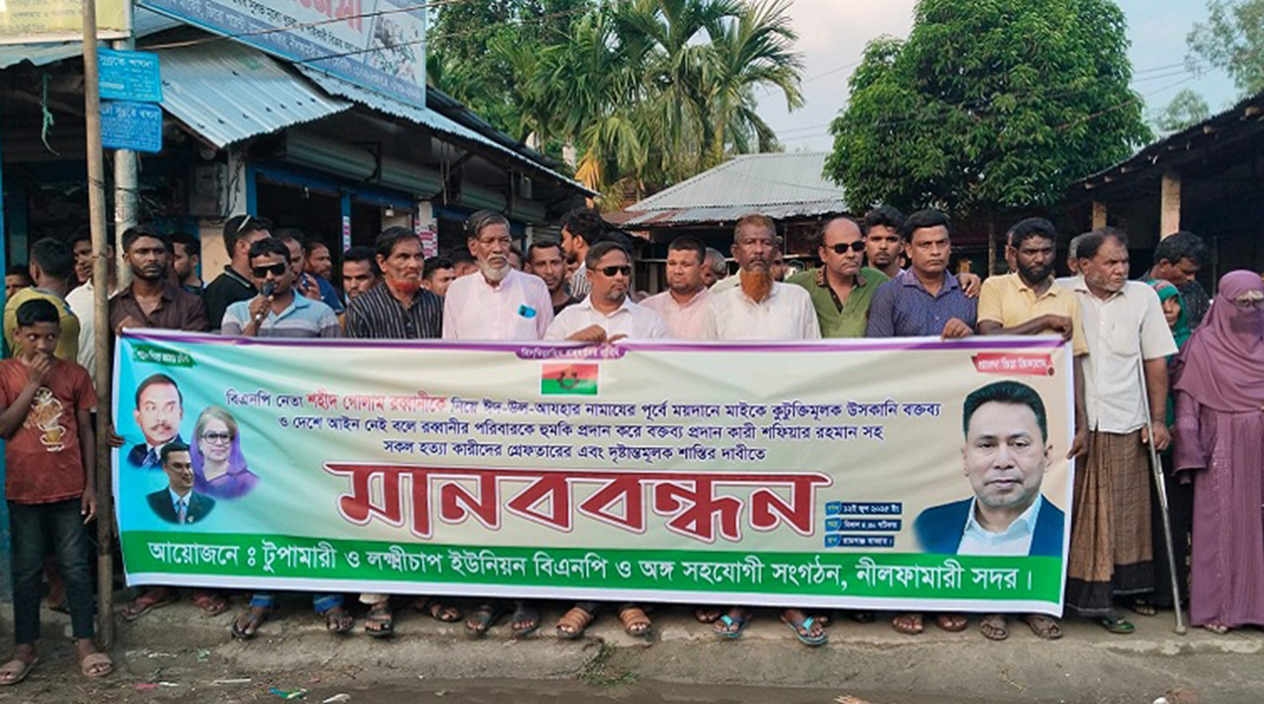 জলঢাকায় বুড়ি তিস্তা খননের দাবিতে কৃষকদের মানববন্ধন