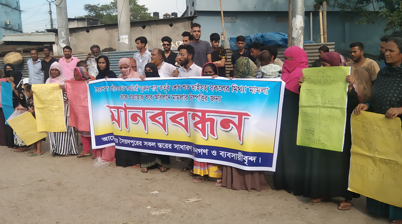 সৈয়দপুরে সরকারী প্রাথমিক বিদ্যালয়ের প্রধান শিক্ষক ও এটিও’র বিচার ও অপসারণের দাবিতে মানববন্ধন
