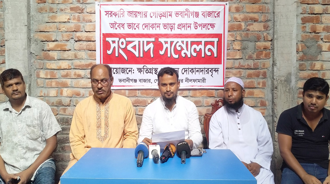 নীলফামারীতে সরকারি জমিতে দোকান নির্মাণ করে ভাড়া উত্তোলনের অভিযোগে সংবাদ সম্মেলন