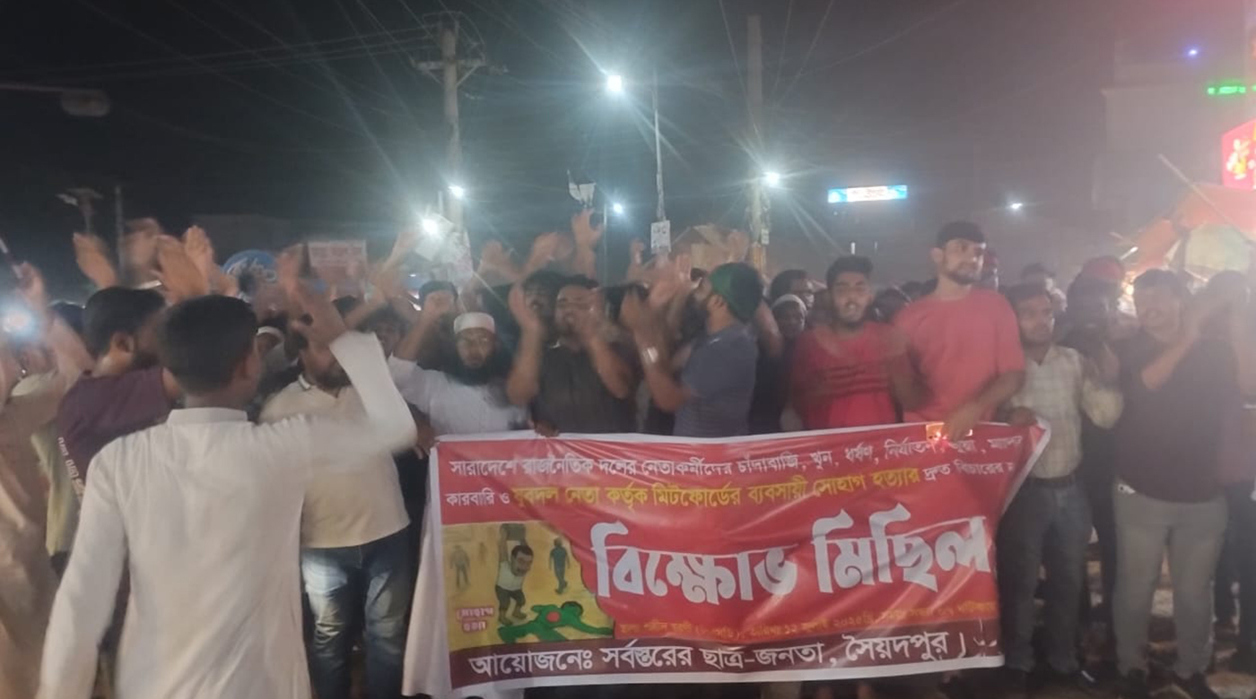 দেশব্যাপি চাঁদাবাজি, হত্যা ও সন্ত্রাসী কর্মকান্ডের প্রতিবাদে সৈয়দপুরে ছাত্র জনতার বিক্ষোভ